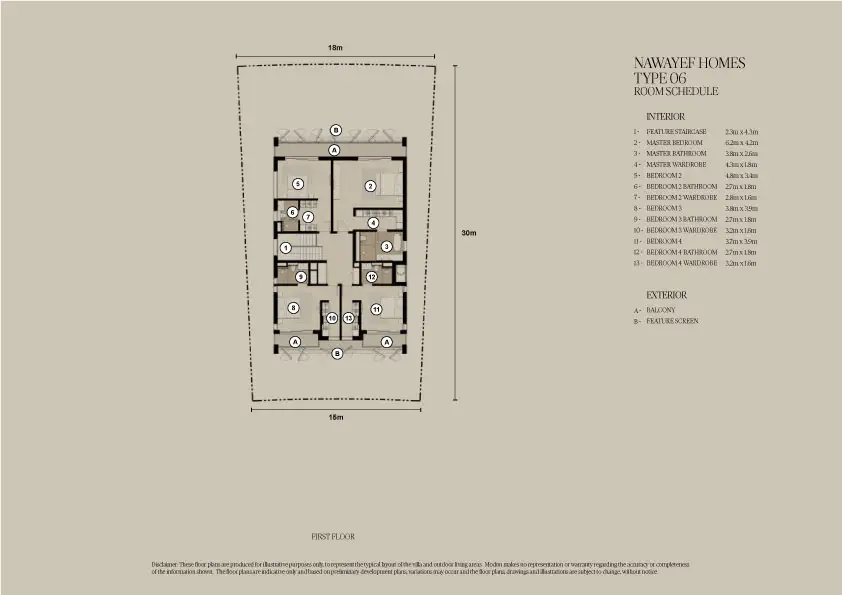 Experience the charm of the Type 06 villa, one of the medium-sized residences in Nawayef West , developed by MODON. Gracefully perched several meters above the rest of Hudayriat Island, this home offers a picturesque panorama and is within a stone’s throw of world-class sporting facilities and the coastline.